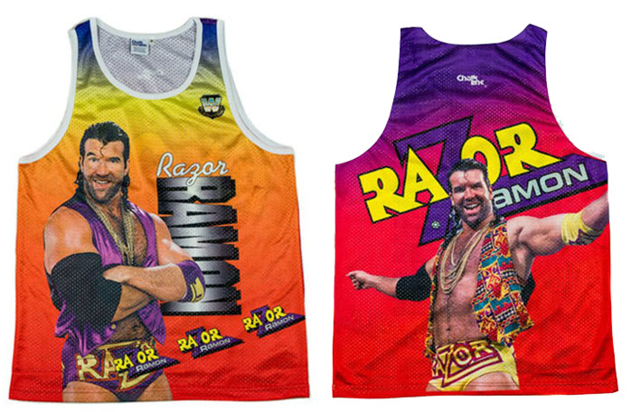 These “Fanimation” tanks are made from 100% polyester lining and feature designs of some of the WWE’s most legendary wrestlers fully covering both the front and back with custom graphics in their original colors. Fans can choose from tops of “Macho Man” Randy Savage, The Ultimate Warrior, Shawn Michaels, and Razor Ramon to sport while they enjoy today’s WWE programming during the scorching summer days.
